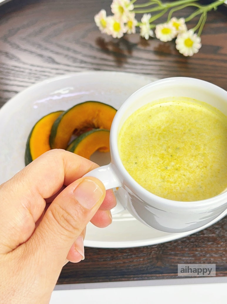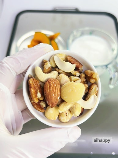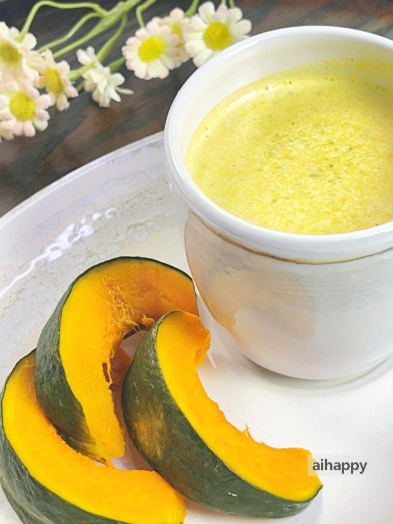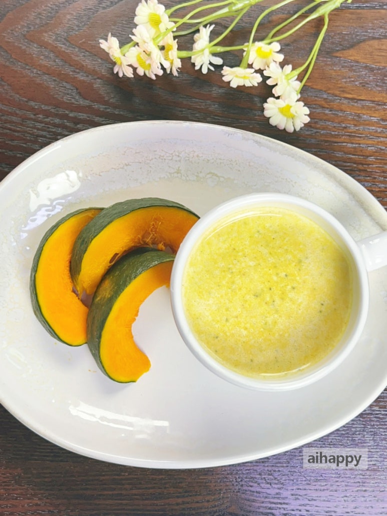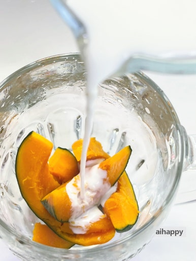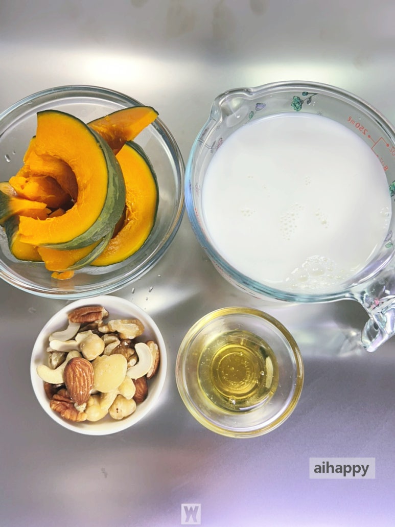 찐 호박을 이용해 우유와 견과류를 넣어 쉐이크로 만들어 보았어요. 간단하지만 영양 가득해요.