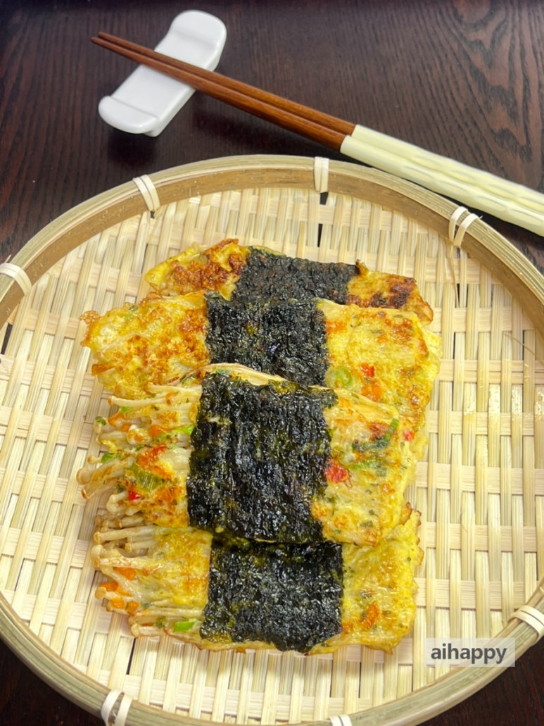 김의 향긋함과 고소한 계란이 찰떡궁합입니다. 가성비 최고 맞지요? 언제 먹어도 변함없는 맛. 부침이나 전 요리는 맛이 없을 수가 없네요.