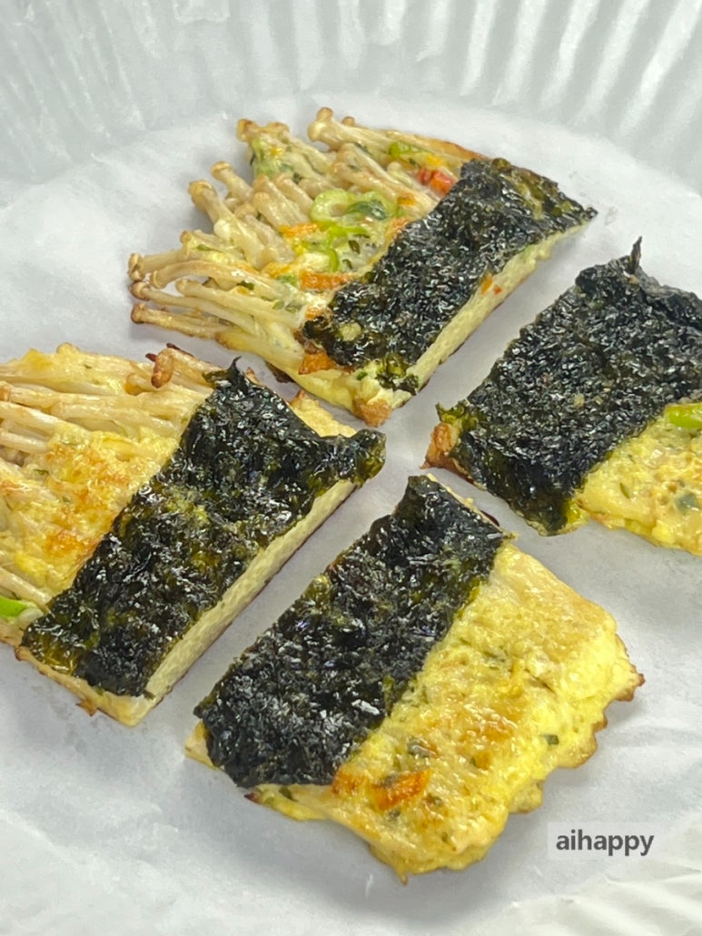 노릇노릇 맛 좋은 비주얼, 수분 함량이 많아 많이 먹어도 부담이 덜해요. 알록달록 채소를 넣어 색감도 맛도 훌륭합니다.