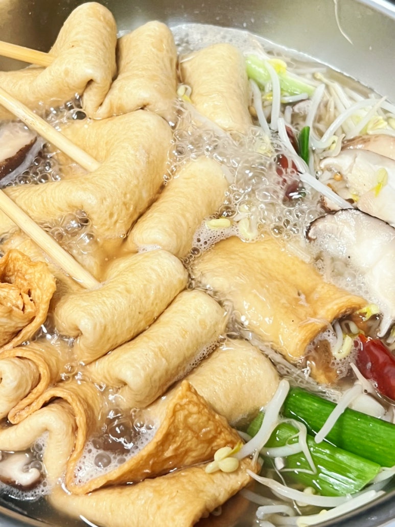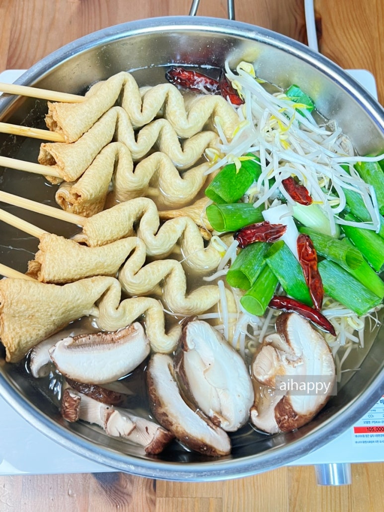 어묵만 있어도 맛이 좋지만, 골라 먹는 재미가 있어야겠지요? 쫄깃한 표고와 아삭한 숙주를 넣어 깊은 맛과 영양을 추가했어요.