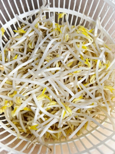 숙주는 흐르는 물에 깨끗하게 세척해 주세요. 중간에 시든 부분이나 껍질 불순물 등을 골라내 주세요.