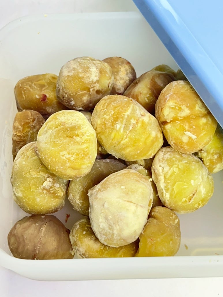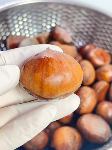 칼이나 손을 이용해 손쉽게 껍질을 제거해 주세요. 귤 까는 느낌이 들지 않나요? 모양도 그대로 유지할 수 있어 더 좋습니다. 많은 양도 손쉽게 준비할 수 있어요.