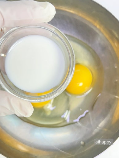 달걀 2개에 우유 1T, 마스코바도 1t를 넣어