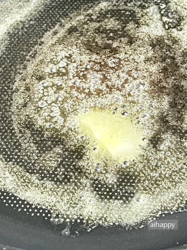예열한 팬에 버터를 녹여주고 계란 물 입은 빵을 구워 주세요. 타지 않게 약~중불을 유지합니다. 은은하게 퍼지는 버터 향은 코끝을 자극하는 매력이 있어요.
