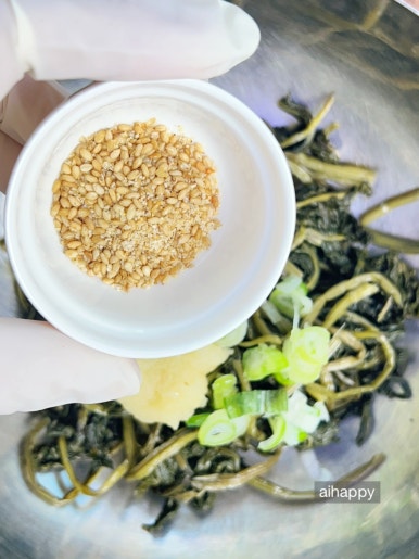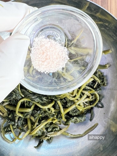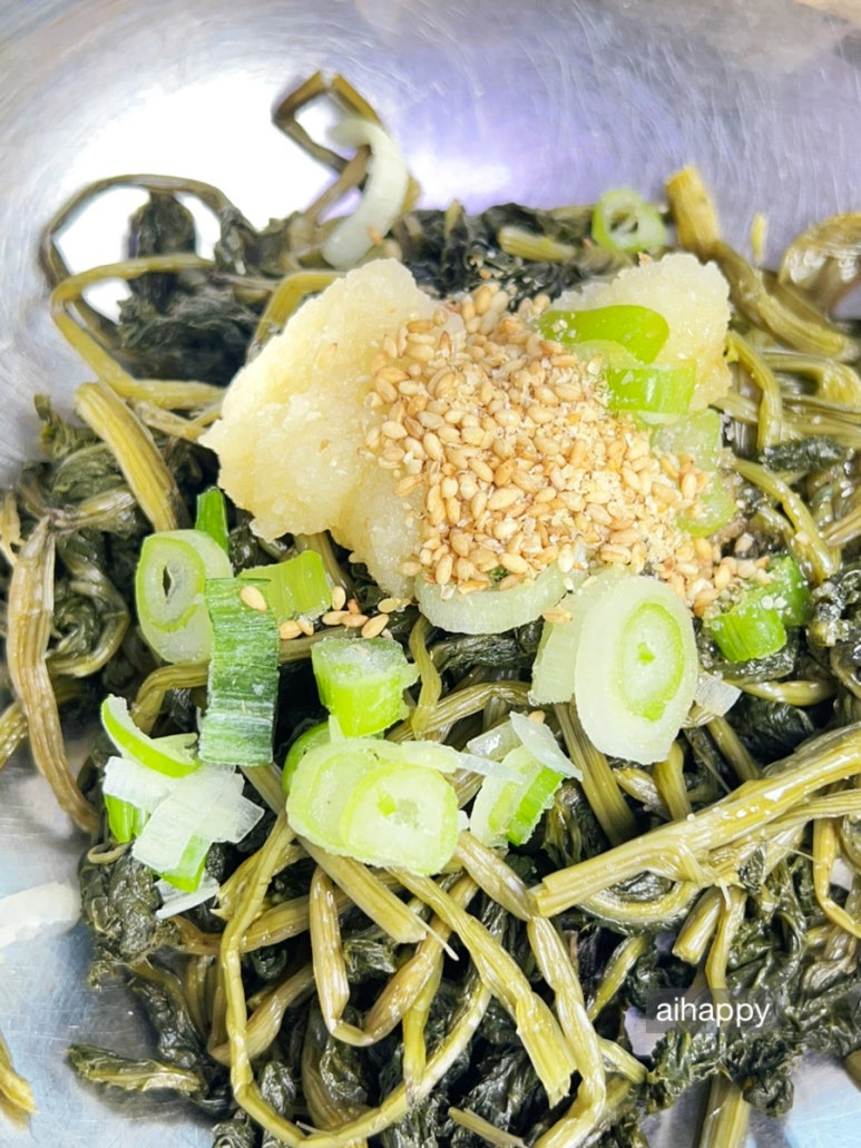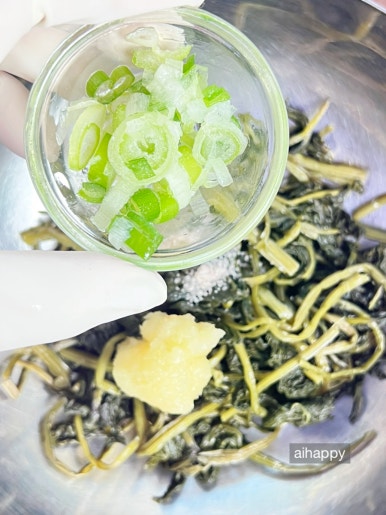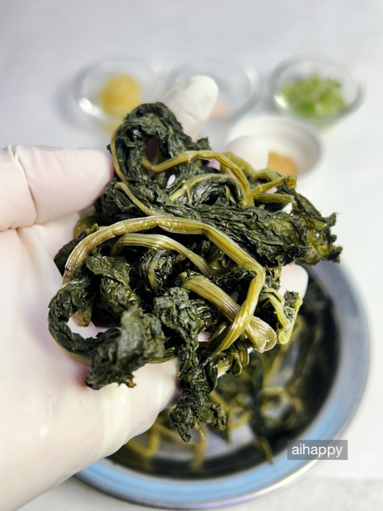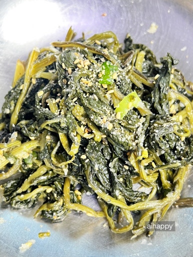 최소한의 재료를 넣어 나물 본연의 맛을 살렸어요. 간을 보고 싱겁다면 소금을 추가하고 고소함을 추가하고 싶다면 참기름이나 들기름을 넉넉하게 넣으시면 됩니다.