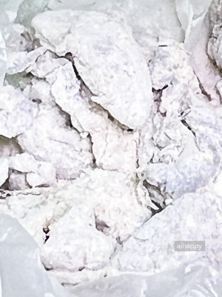 부침가루 1~2 T를 위생봉투에 넣고 가볍게 섞어주세요.