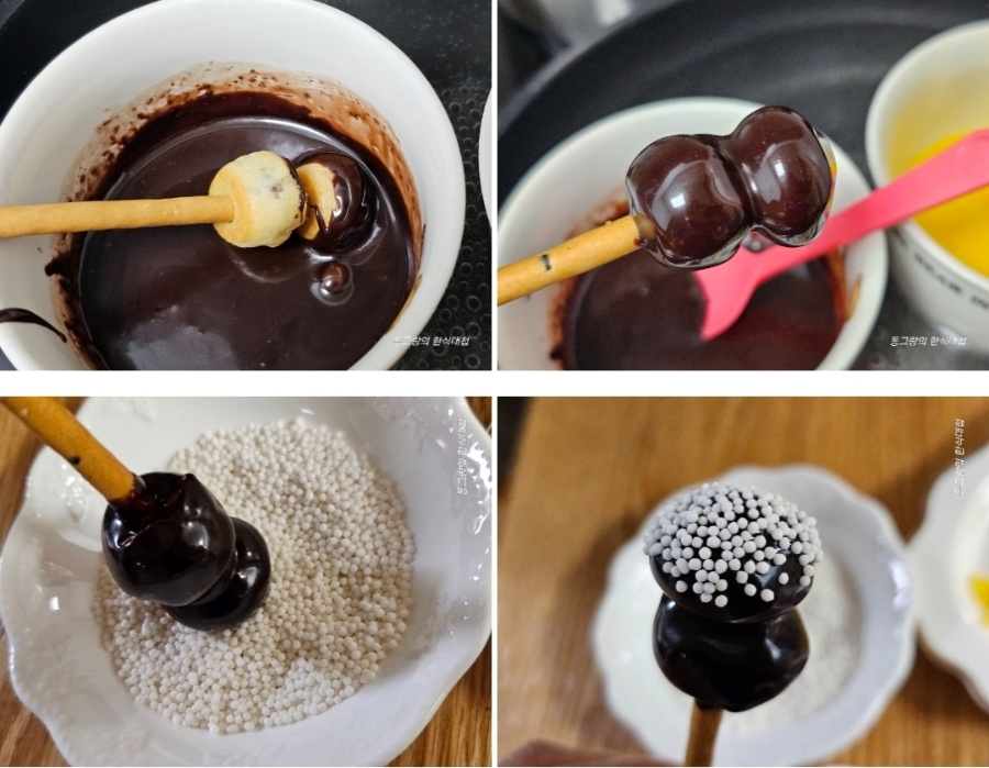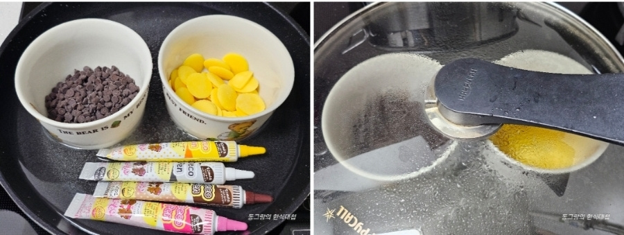 식으면 굳기 때문에 약불에서 중탕하면서 작은 티스푼이나 포크, 젓가락을 이용해서 끼얹거나 발라주세요.