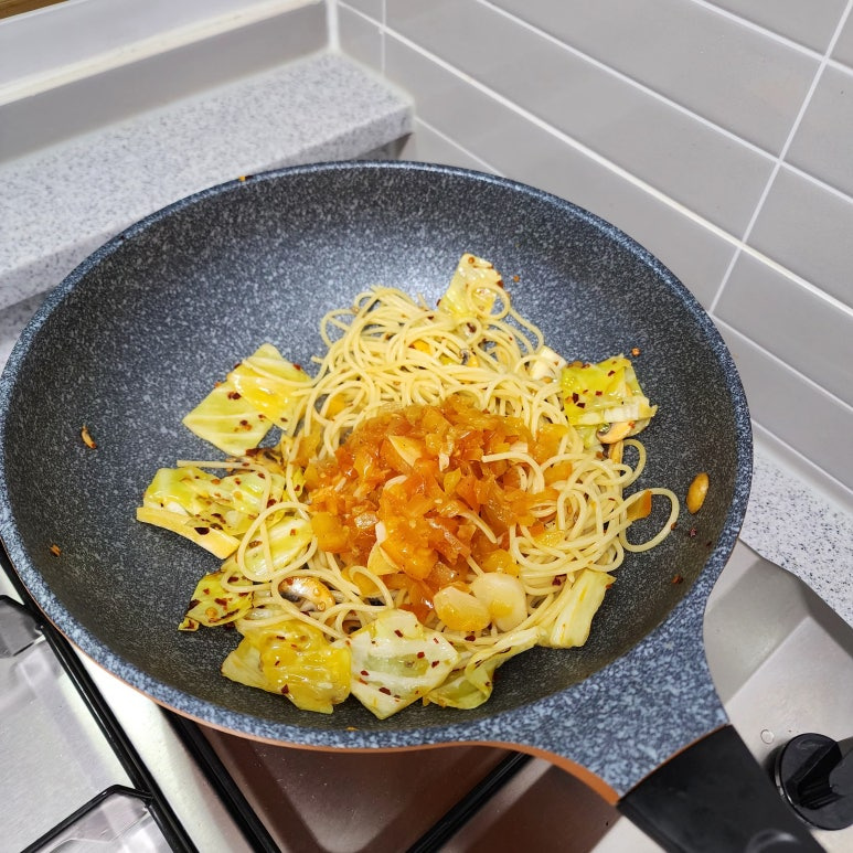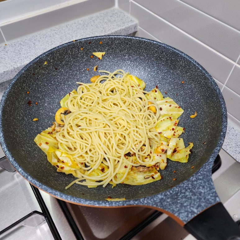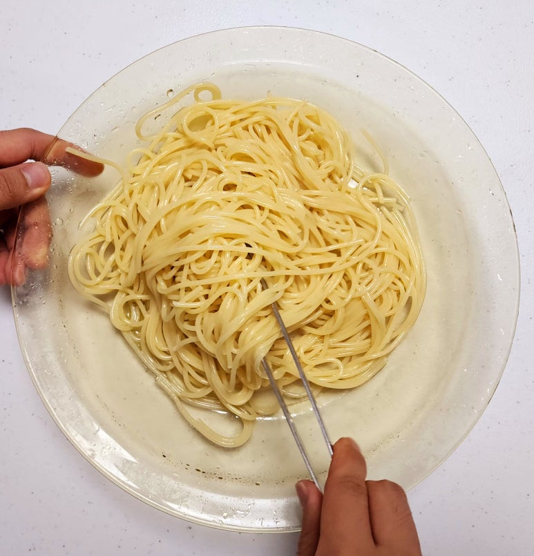 저는 스파게티 면을 사용해서 8~9분을 삶아 주었는데 사용하시는 면에 따라 삶는 시간이 다르니 포장지 뒷면을 참고해 삶아주세요