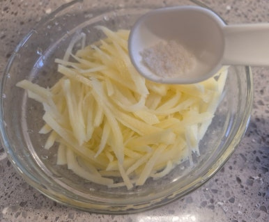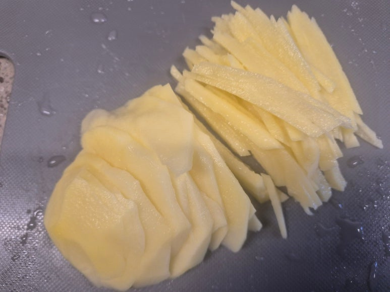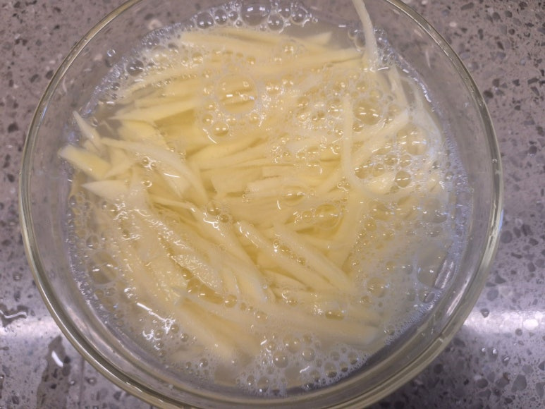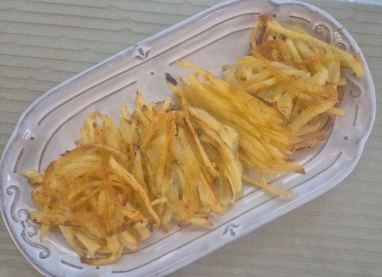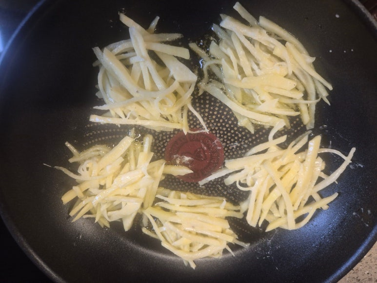 오늘은 다른 식감으로 감자를 채로 썰어서 만들어 보았어요 재료는 같지만 맛과 식감이 다른 감자 전입니다 감자는 같의 크기의 바나나보다 칼로리가 적지만 다른 첨가물로 인해서 칼로리가 증가하지요 오늘은 건강보다는 입맛 없을 때 바삭한 감자 채전 만들었어요 비 올 때면 전 생각나죠 오늘이 제격인 것 같아요