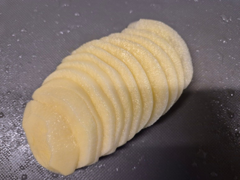 감자를 0.3cm 정도로 썰어서 준비해 주세요