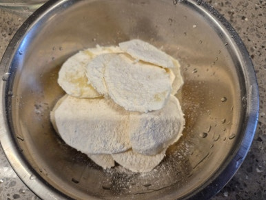 썰어 놓은 감자를 튀김가루를 묻혀주세요