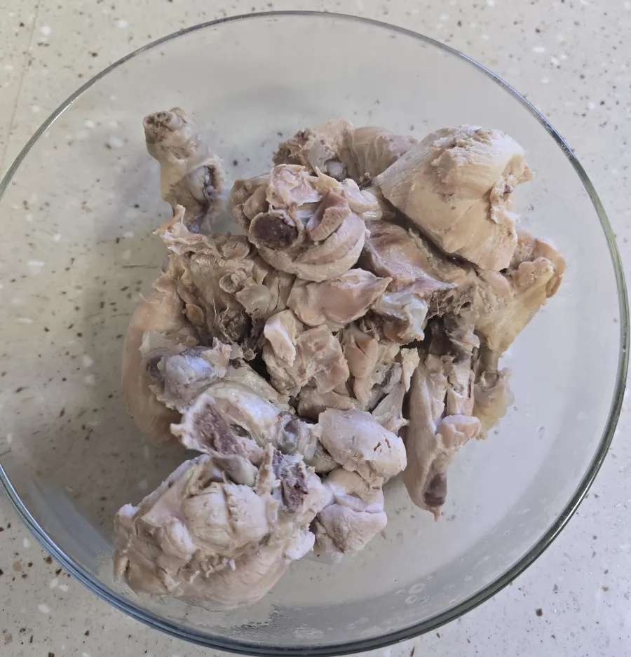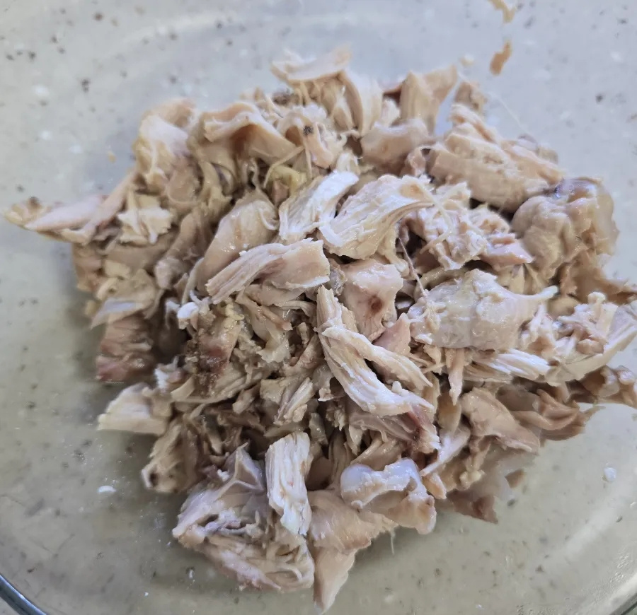 삶은 닭은 충분히 식혀야 쫄깃하고 부드럽게 결대로 찢을 수 있어요.