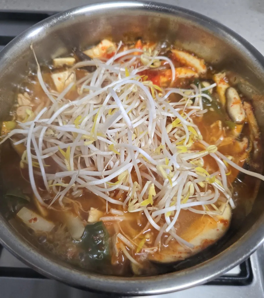 숙주는 너무 오래 끓이면 물컹해져서 맛이 없어요.