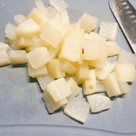 기름제거 되는동안 무는 썰어서 따로 빼주세요