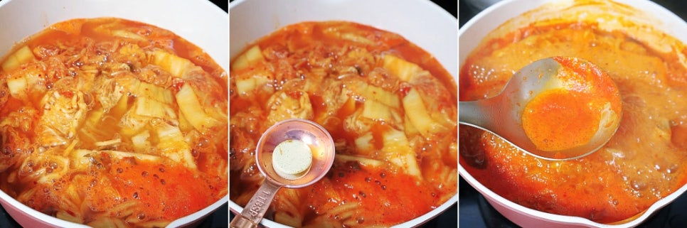 김치 국물을 넣으면 국물이 훨씬 깊은 맛과 감칠맛이 난답니다
