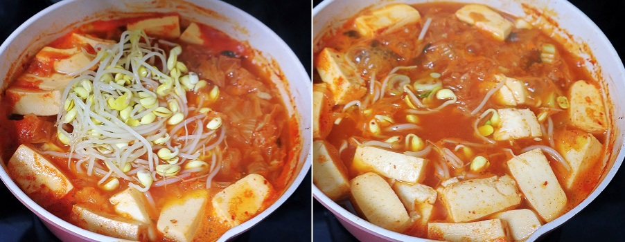 콩나물은 삶아 놓았기에 김치국부터 끓인 후 마지막에 넣어