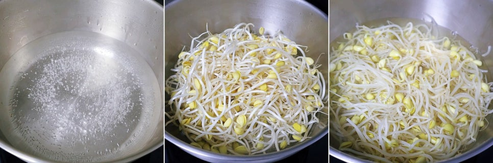 물 3컵을 붓고 팔팔 끓으면 콩나물 300g을 모두 넣고