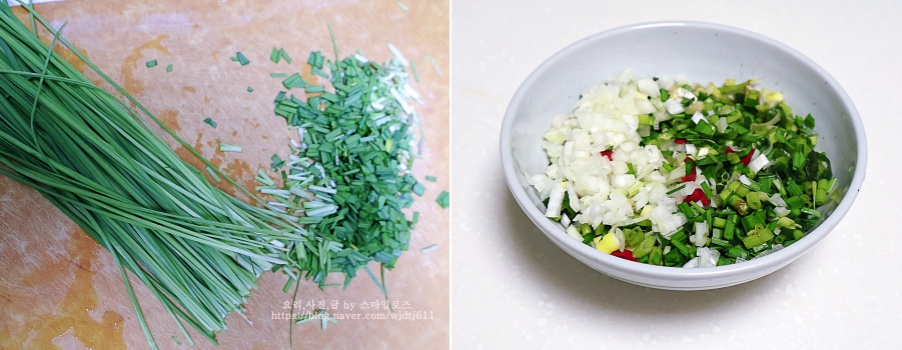 부추는 송송 썰어주고 양파 1/2개 도 잘게 썰어주고