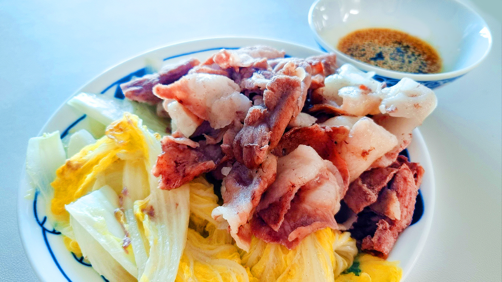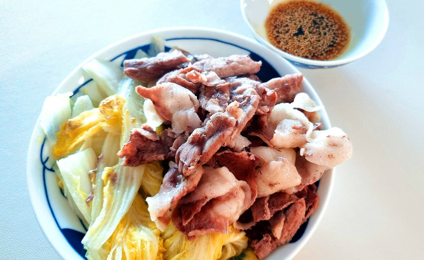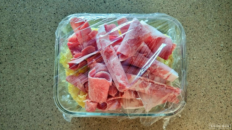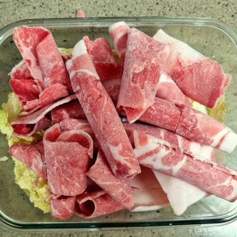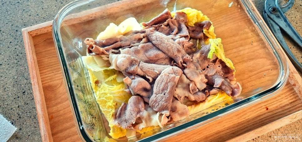 채소는 아래에, 고기는 위에 듬뿍듬뿍 담아줍니다.