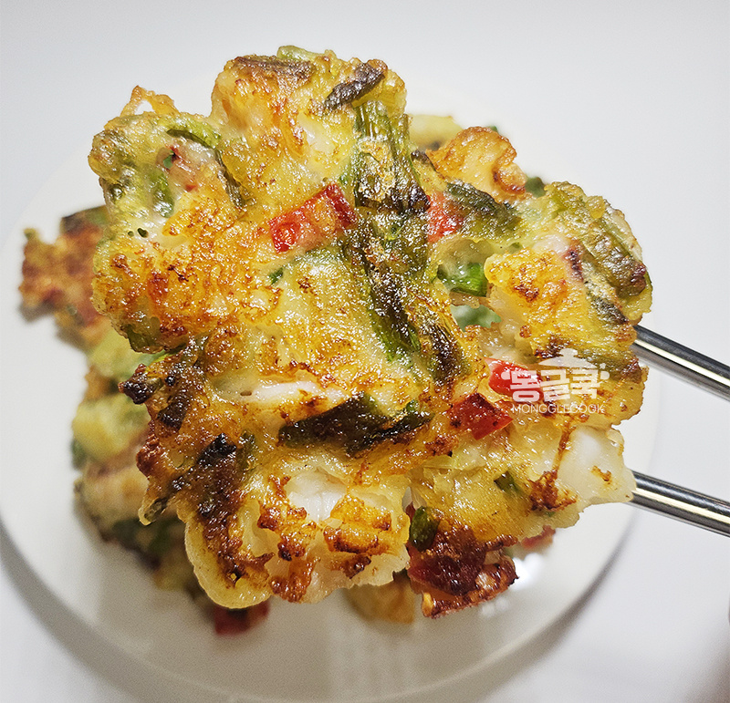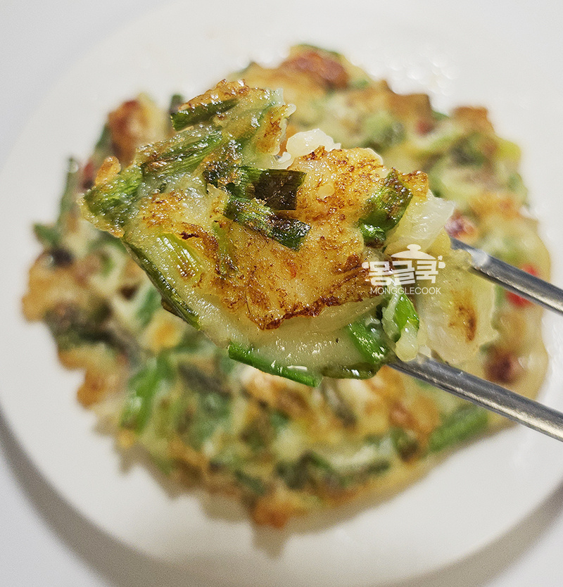 묽은 듯 되직하게 유지하는 게 바삭하게 부치는 비결이에요