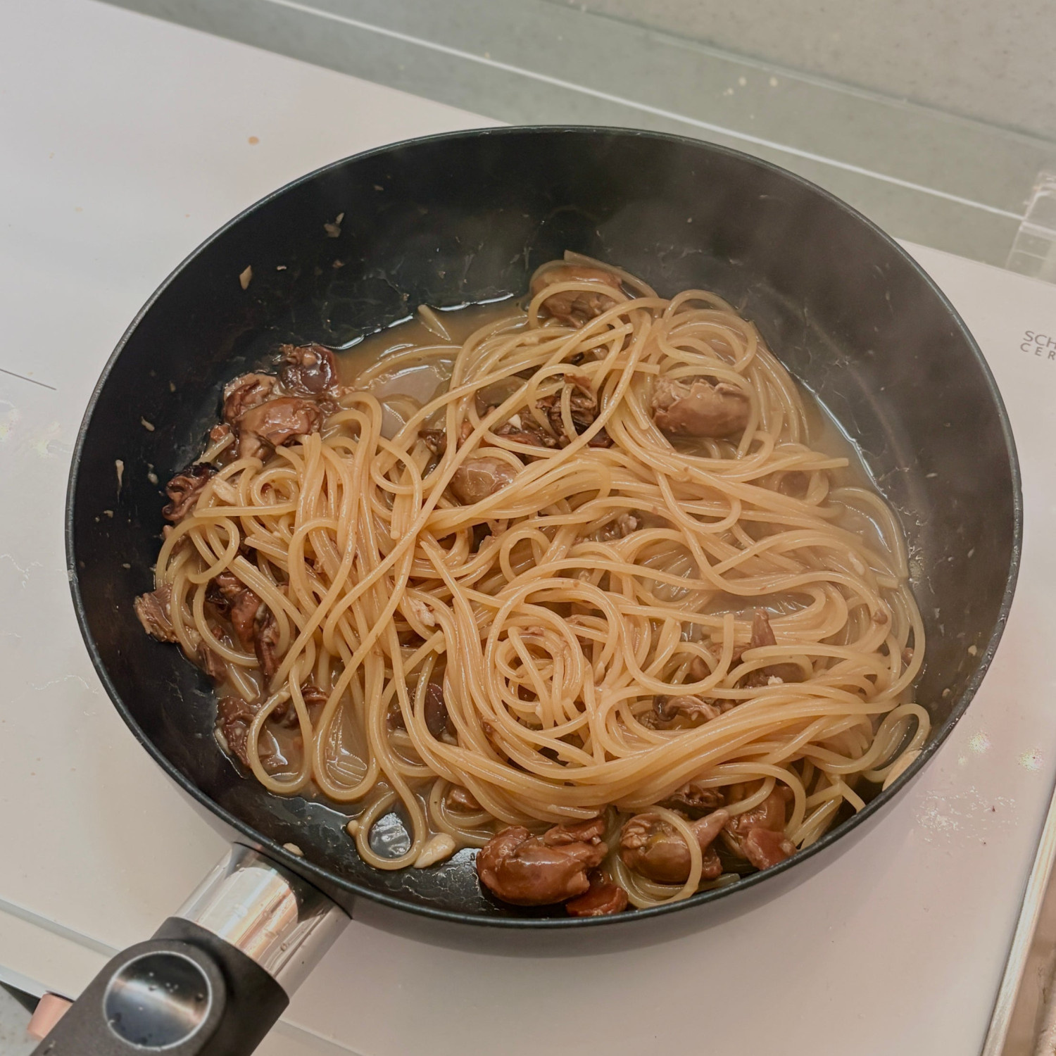 삶은 스파게티 면 넣어 2분 버무리기