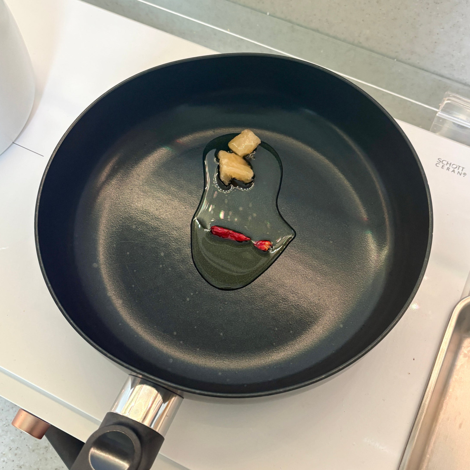 올리브오일에 다진 마늘과 페페론치노 볶기