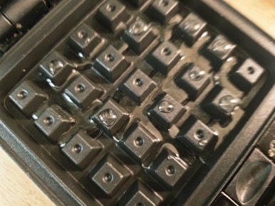 와플기를 예열한 후 기름을 발라준다