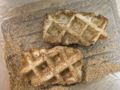 맛있게 구워진 가래떡 와플을 찬통에 넣고 뚜껑을 덮은 후에 양념이 골고루 묻게끔 인정사정없이(?) 흔들어서주면 끝!
