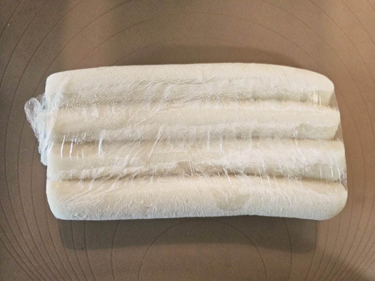 냉동실에 랩으로 감싸서 얼려놓은 가래떡을 꺼내서 준비해준다