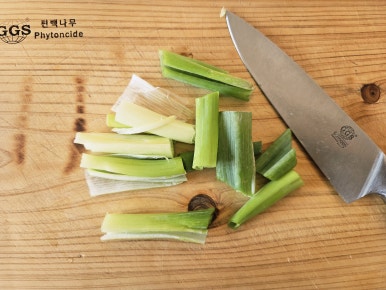 쪽파 2뿌리를 맛있게 끓여진 어묵탕에 베트남 고추 1개를 부셔서 뿌려주면 국물에서 얼큰하고 칼칼한 맛난 국물이 완성된다