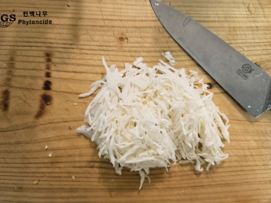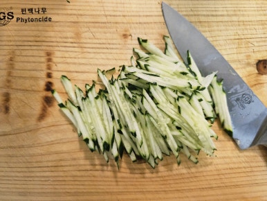 양배추도 한움큼 정도의 양을 채썰어서 준비해주고 오이 1/2개도 채썰어서 준비해준다