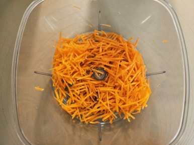 깨끗하게 세척한 당근 1/2개 정도의 양을 채썰어서 준비해준다