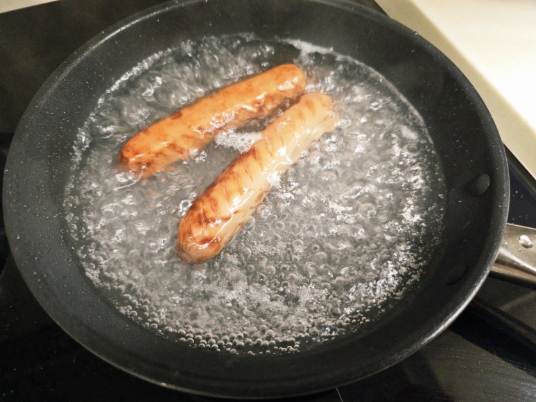 소시지 2개를 끓는물에 삶아서 준비해준다