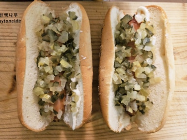 주재료 : 핫도그빵, 소시지, 피클, 양파