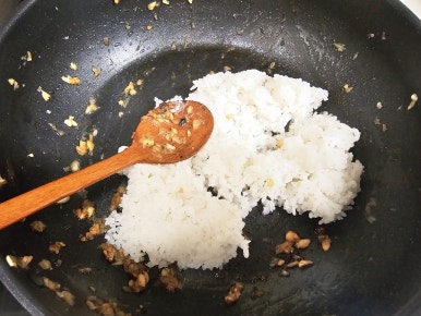 새우를 볶았던 팬에 밥 2인분을 넣은 후 소금 한꼬집을 넣고 골고루 볶아준 후 마음에 드는 접시에 이쁘게 담으러 GO GO~