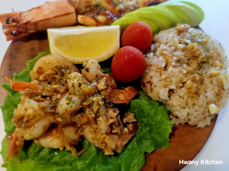 "오늘도 버터의 부드러움과 마늘향을 품은 새우 아빠표 '버터갈릭새우라이스'로 맛있게 촵촵촵~~~~"