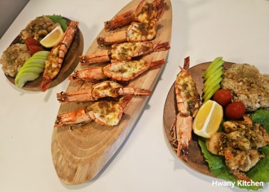 타이거 새우를 사용해서 버터갈릭새우구이도 곁들여주면 더더욱 멋진 한상차림 완성!