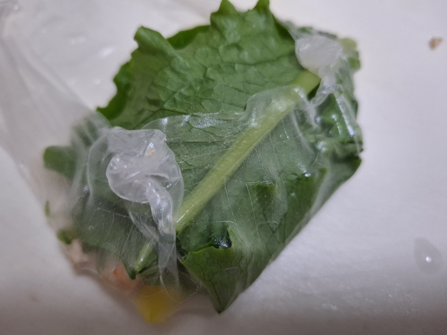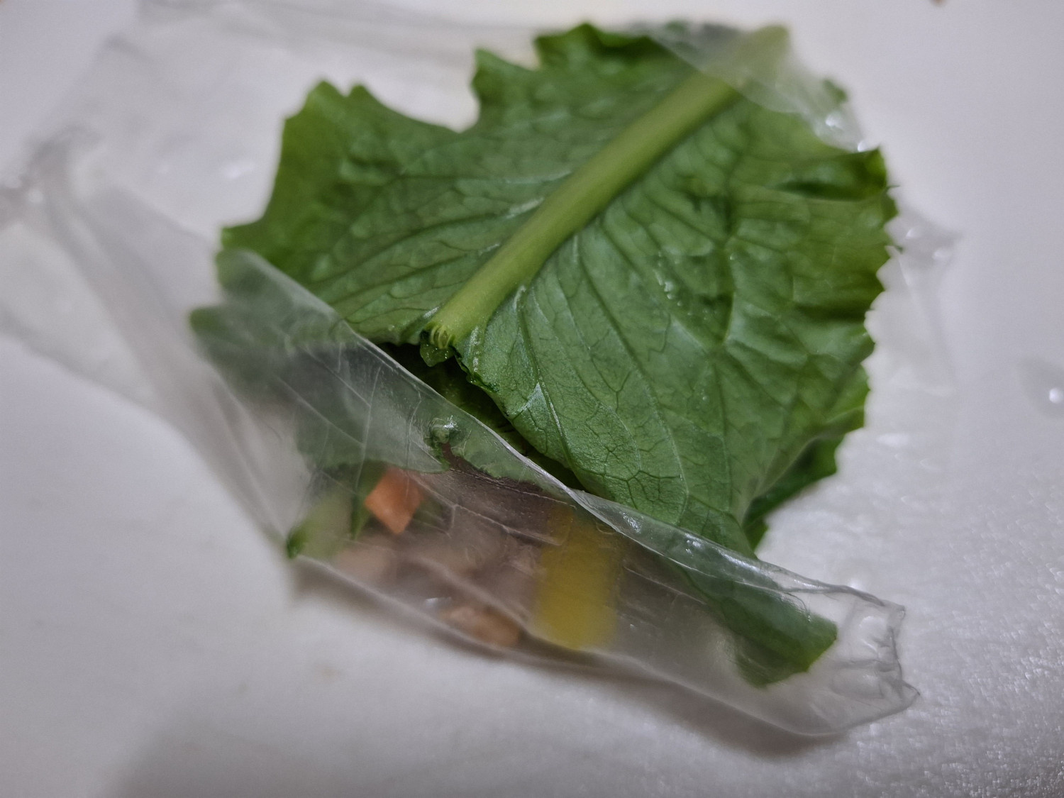 양옆에 남겨둔 라이스페이퍼를 먼저 접어주세요.