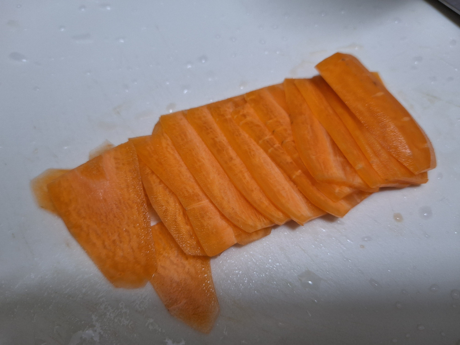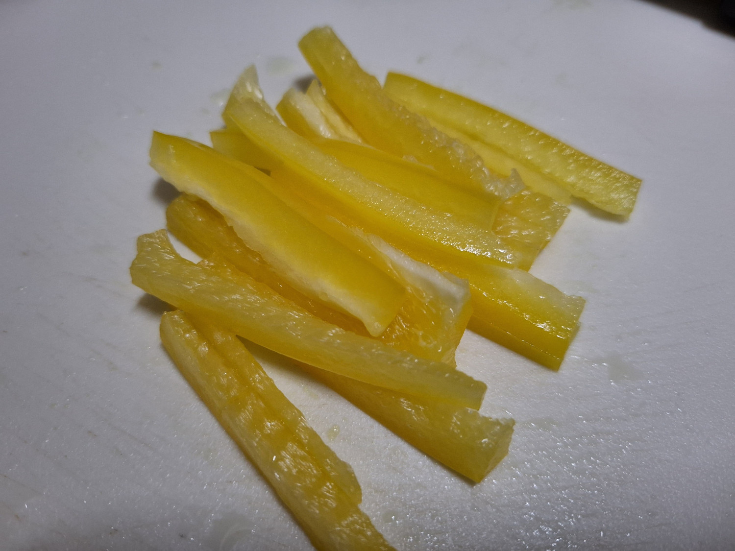 그리고 오이와 노란파프리카, 당근은 얇게 채썰어주세요.