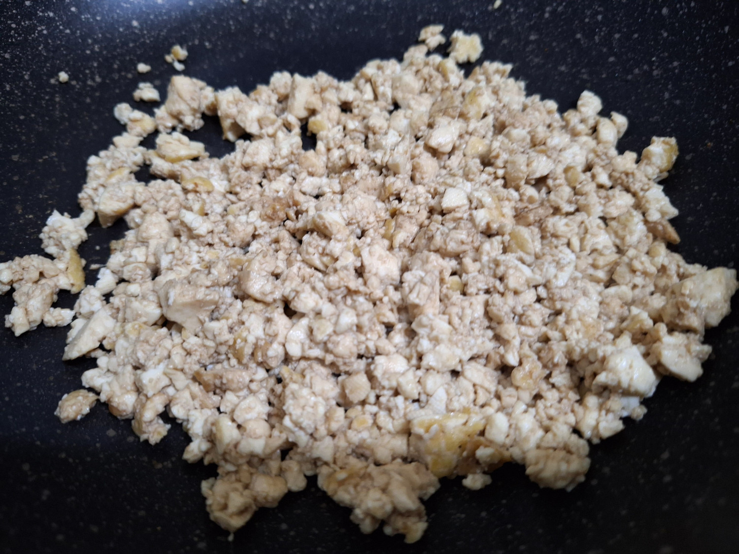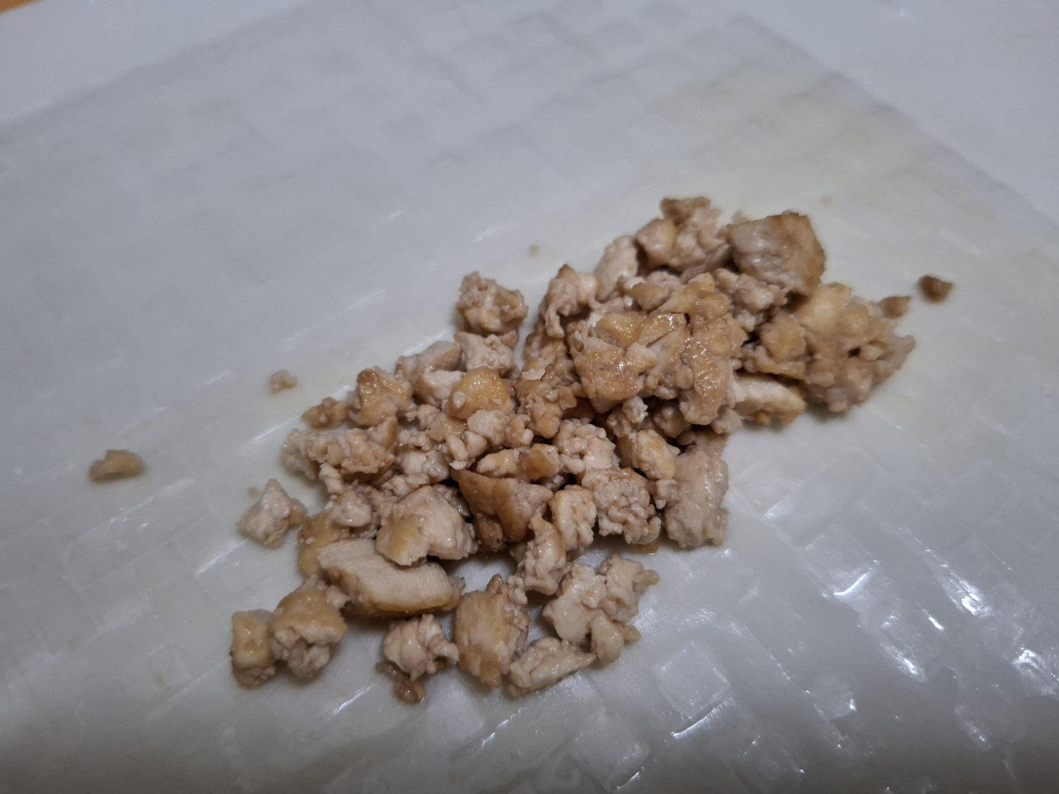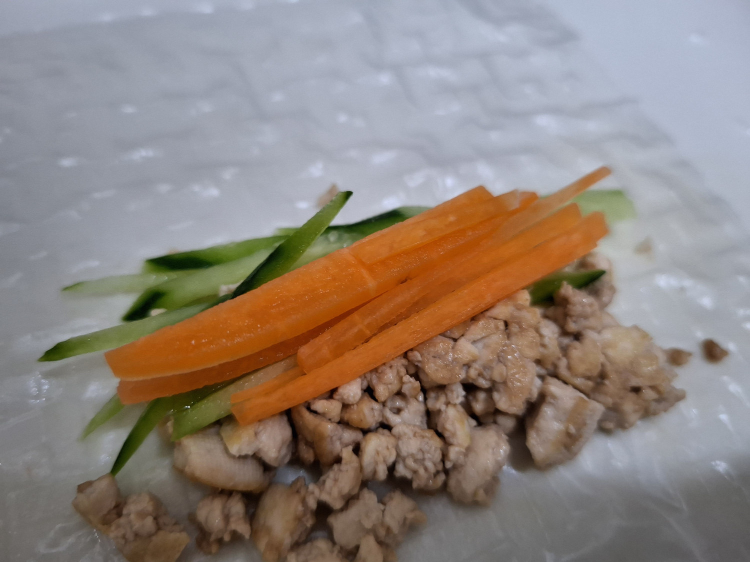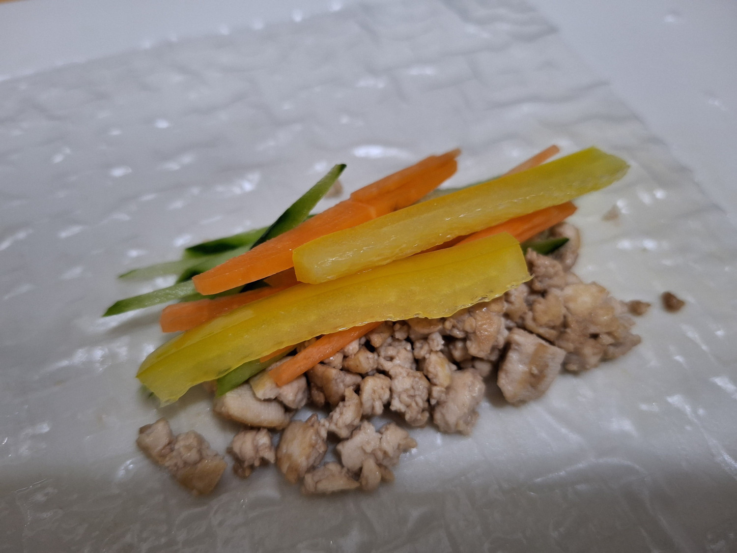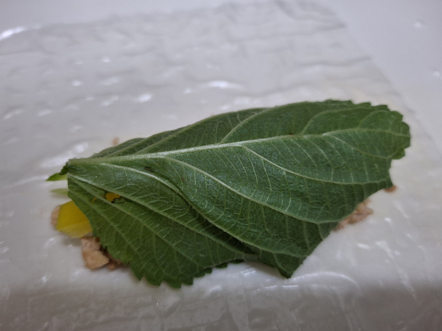 라이스페이퍼 위에 볶은 두부스크램블을 올려줍니다.