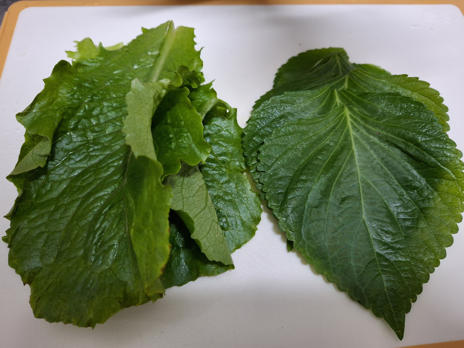 상추와 깻잎은 물기를 제거한 채로 잠시 대기합니다.