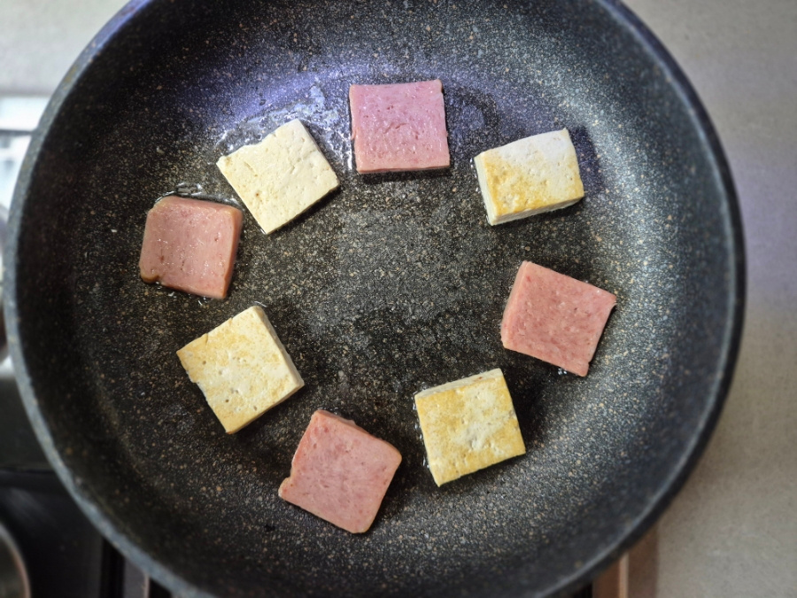 두부를 끓는 물에 데쳐 부들부들하게 먹어도 맛있지만 저는 기름에 노릇 고소하게 구워 먹는 걸 좋아해서 아주 빠짝 구워줬답니다