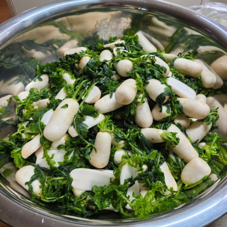 꼭지와 겉잎을 제거하고
