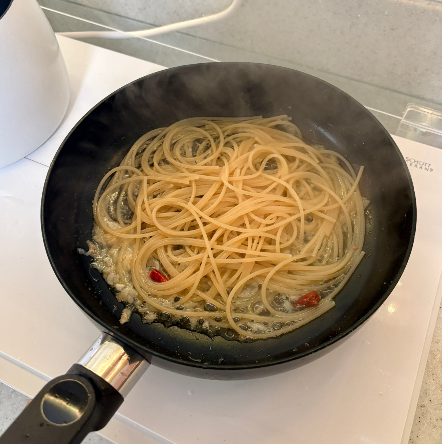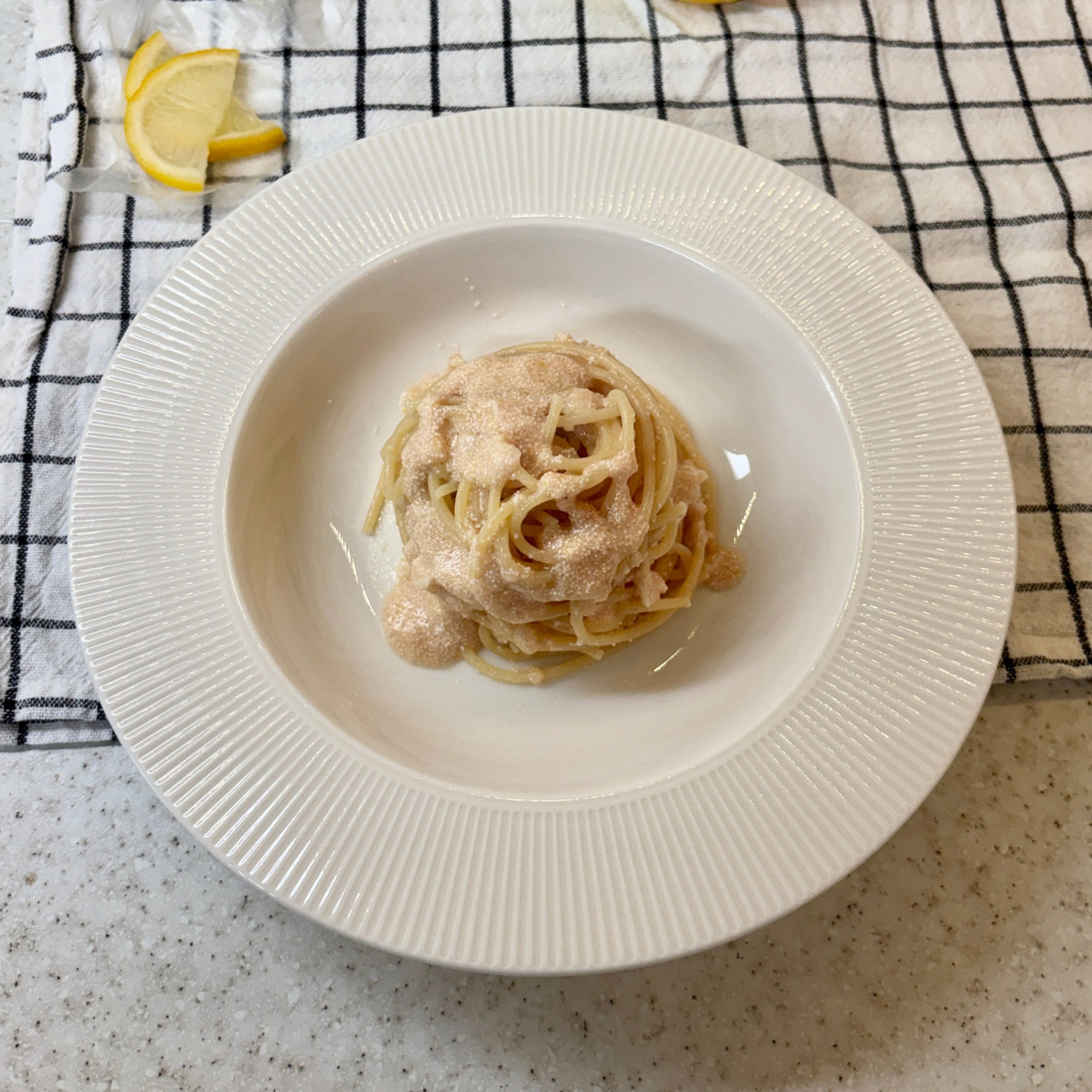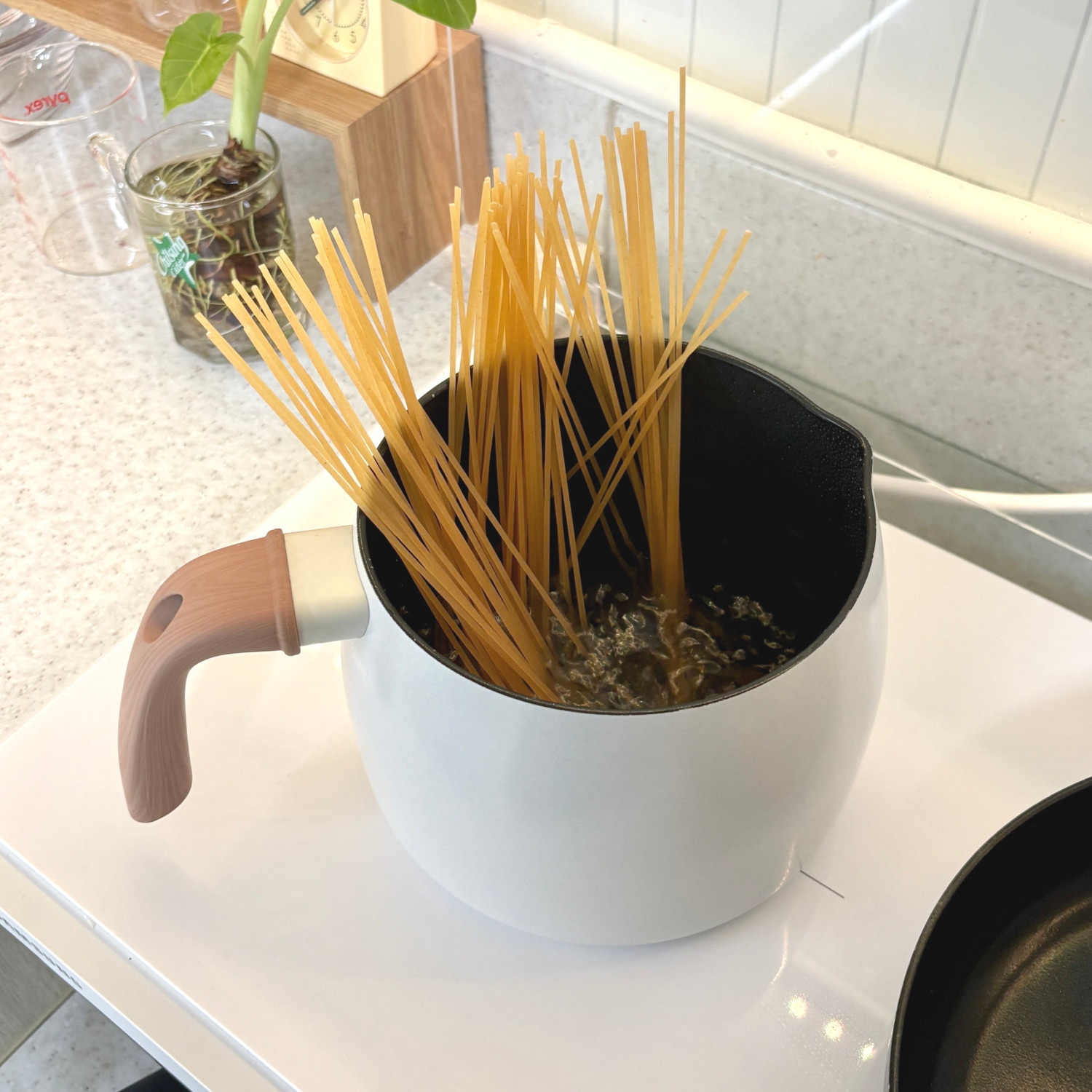면수에 평소 넣는 소금양의 반절인 5g 만 넣어주세요.(명란이 짜고, 면수도 써야 해요)