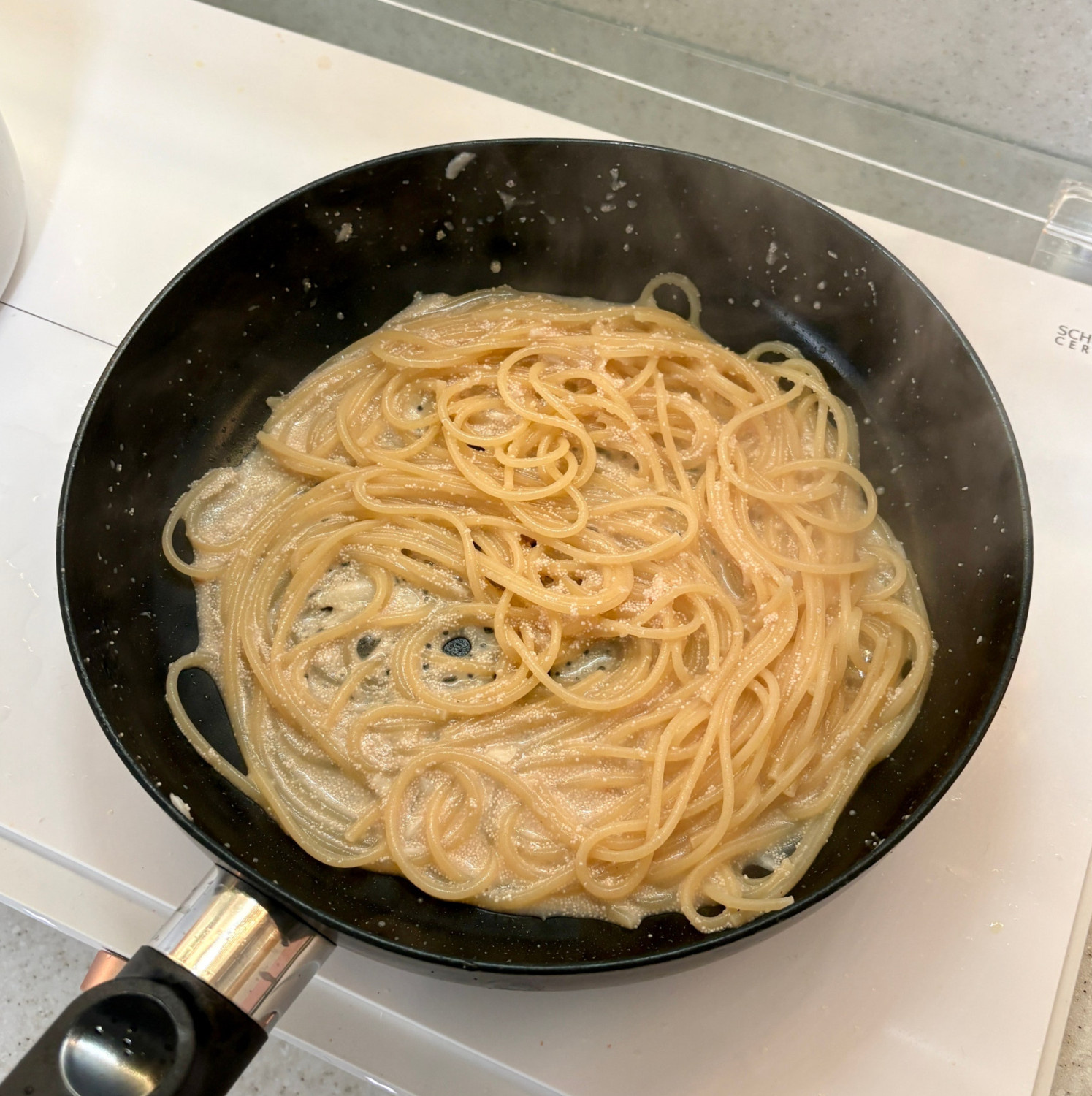 명란이 뭉치지 않게 잘 섞어주시고 소스의 농도를 보며 면수를 추가해 주세요.