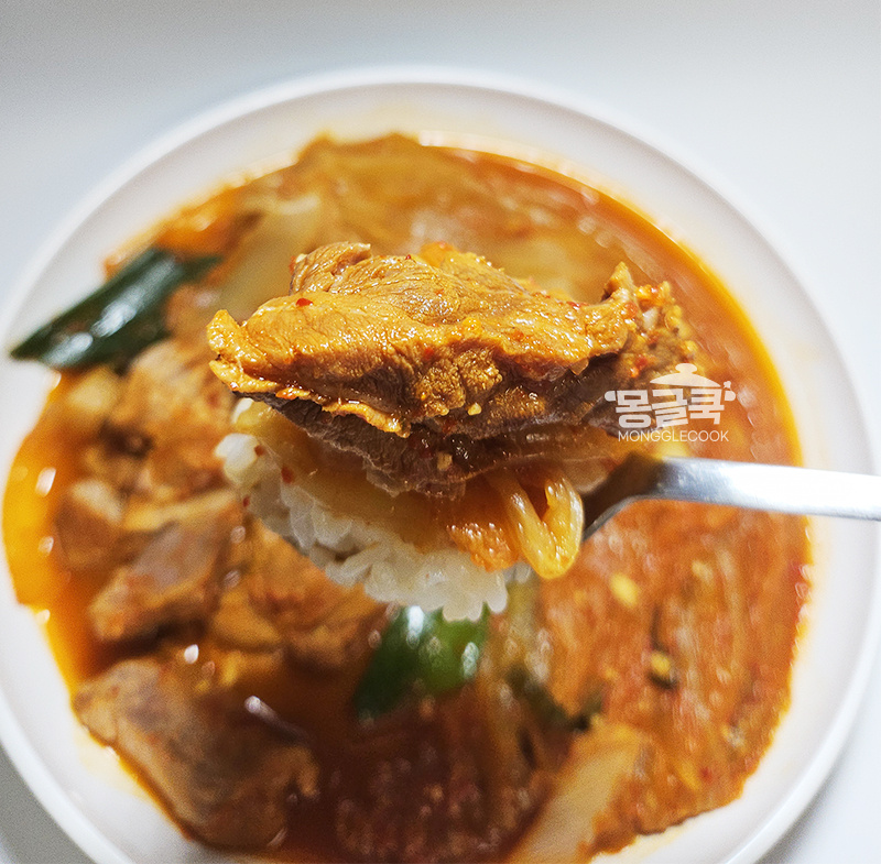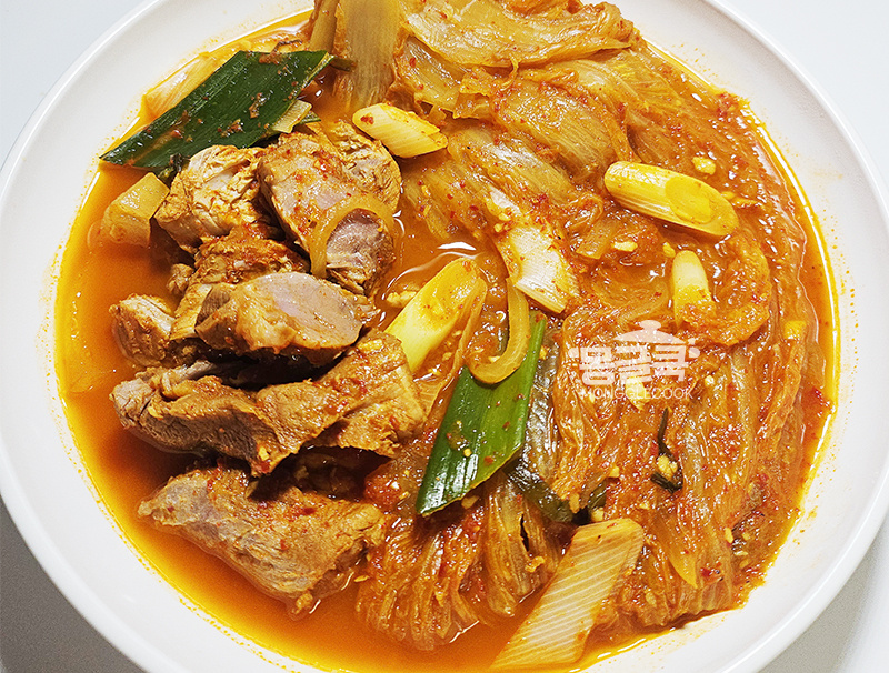 국물은 자작하고, 고기와 김치가 야들야들하게 익어 밥 한 공기 뚝딱!