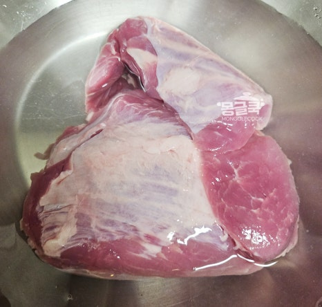 돼지고기 사태는 찬물에 담가 핏물을 살짝 빼준 뒤 큼직하게 썰어주세요.
