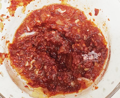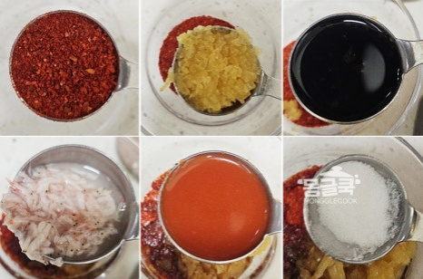 김치 국물 3~6큰술, 고춧가루 1~2큰술, 다진 마늘 1큰술