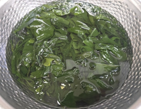 건미역은 찬물에 20분 이상 불린 후, 손으로 바락바락 주물러 씻어주고 물기를 꼭 짜서 가위로 잘라주세요.