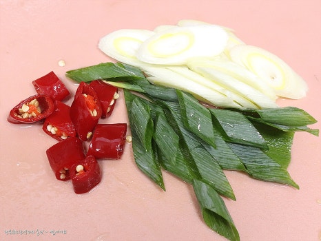 홍고추 송송,대파 어슷썰어 넣고 끓여요~